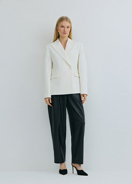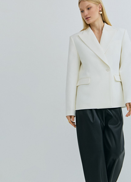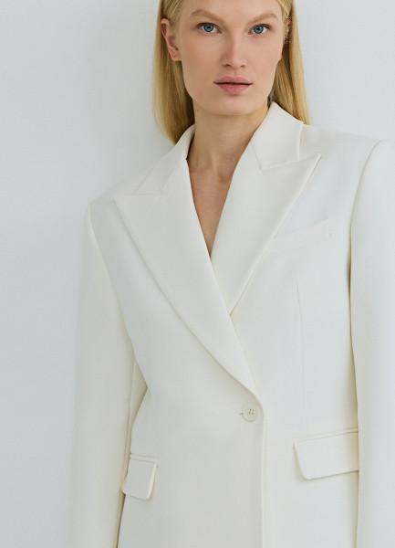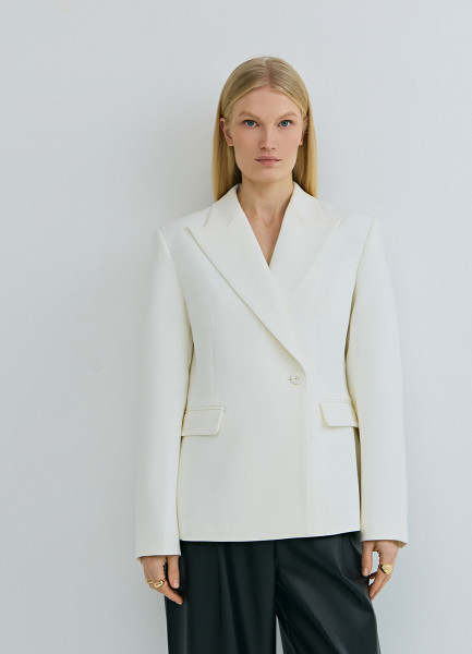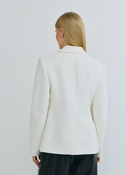 Приталенный двубортный жакет, Белый