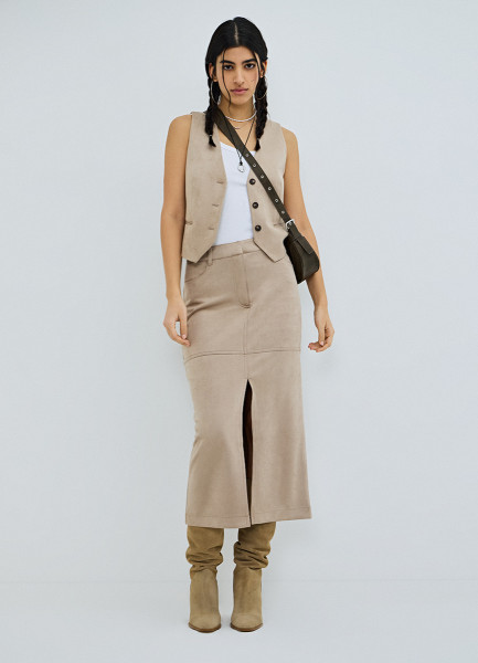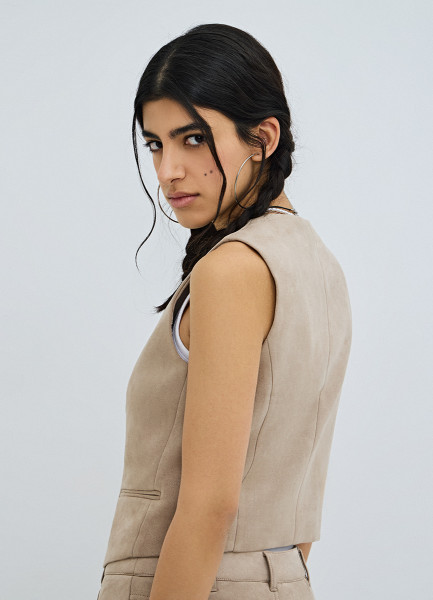 Жилет из искусственной замши, Бежевый
