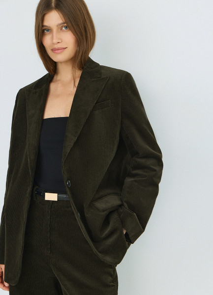 Однобортный жакет из вельвета, Зеленый