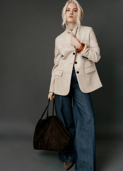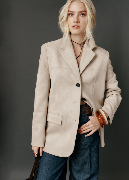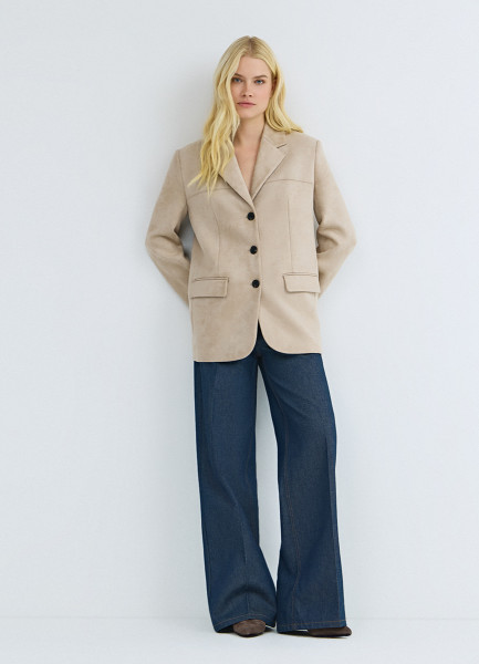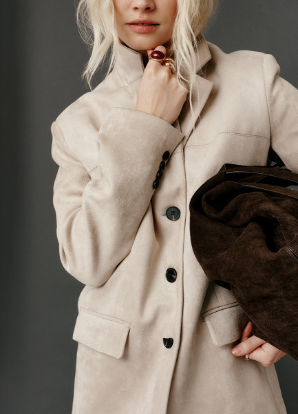 Однобортный жакет из искусственной замши, Бежевый