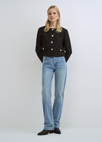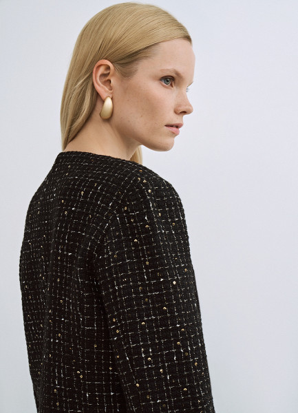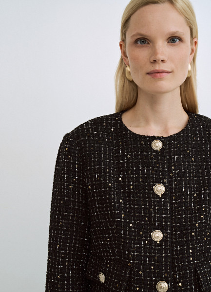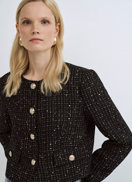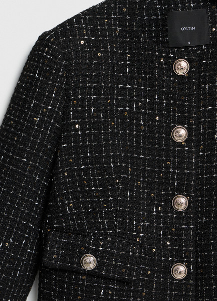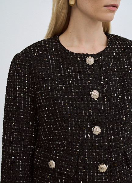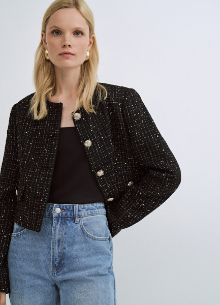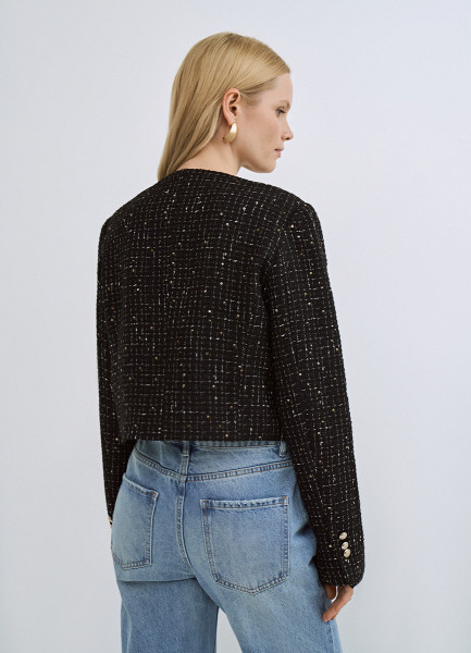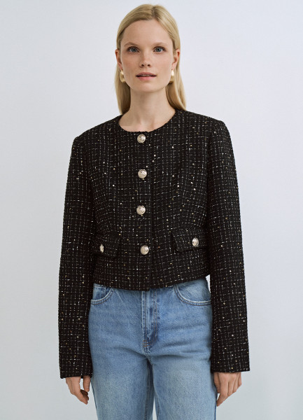 Твидовый укороченный жакет, Черный
