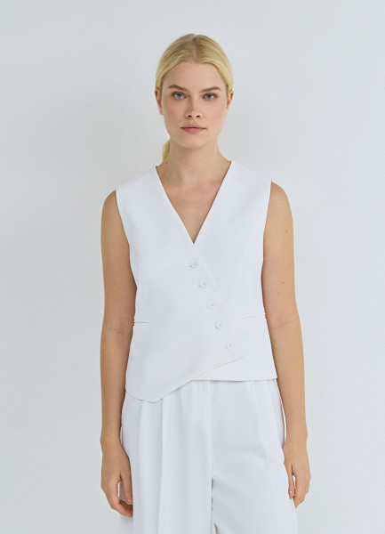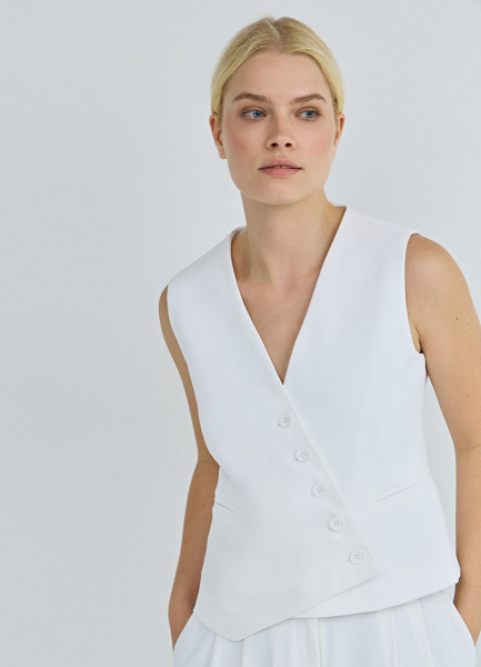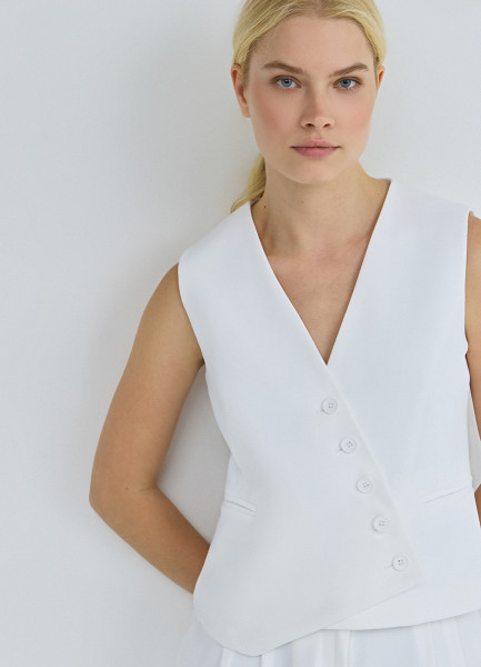 Жилет с ассиметричной застёжкой на пуговицы, Белый