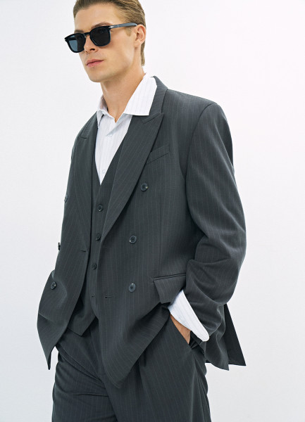 Двубортный пиджак в полоску O'STIN x Яндекс Книги, Серый