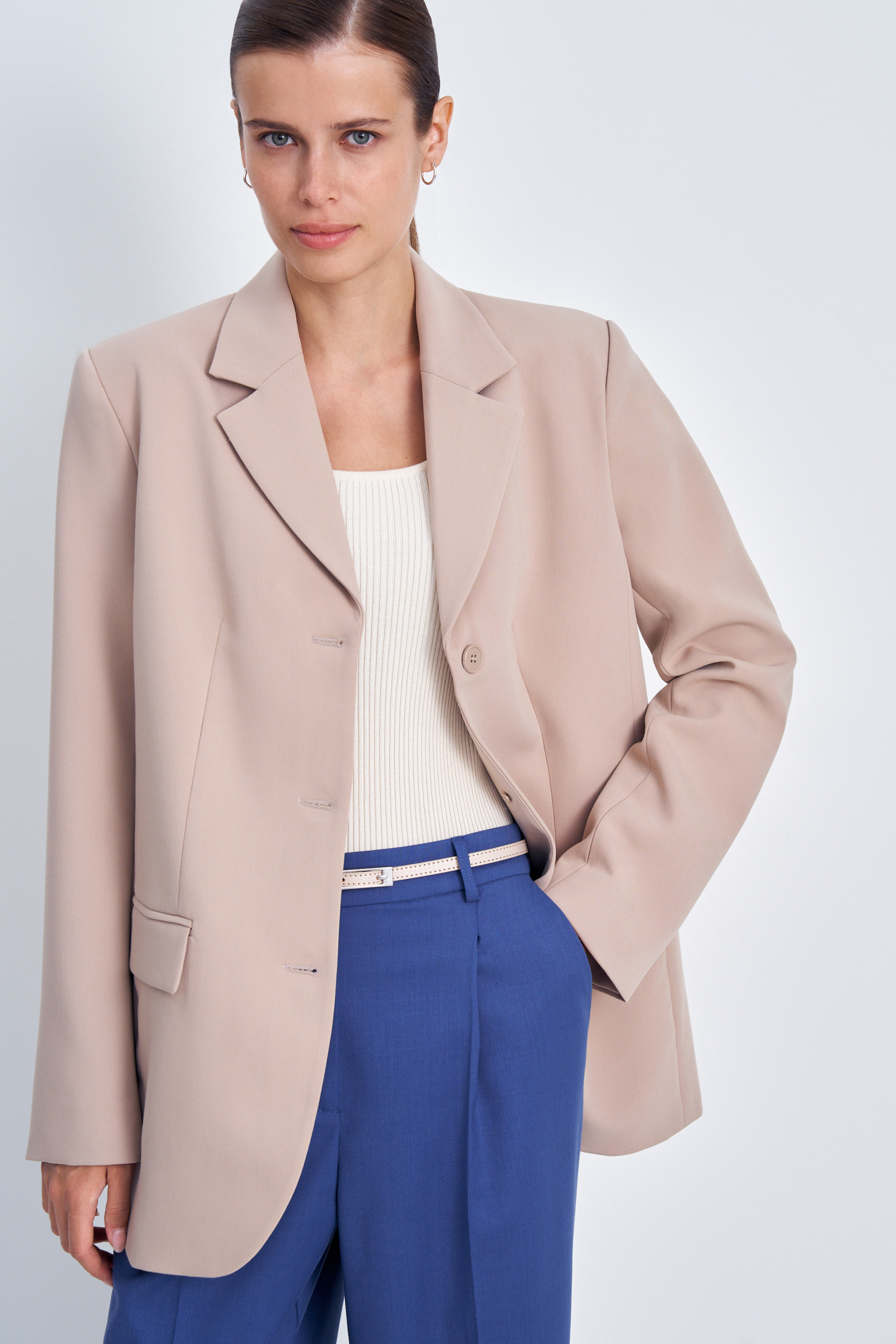Однобортный жакет с накладными карманами
