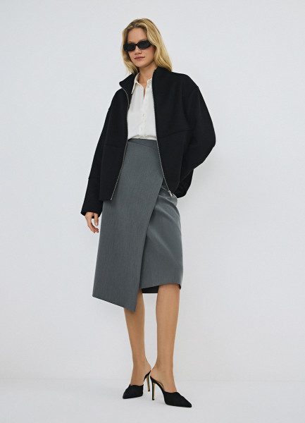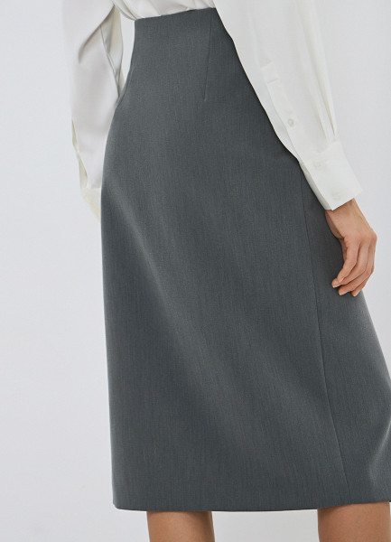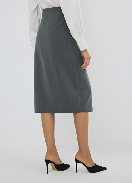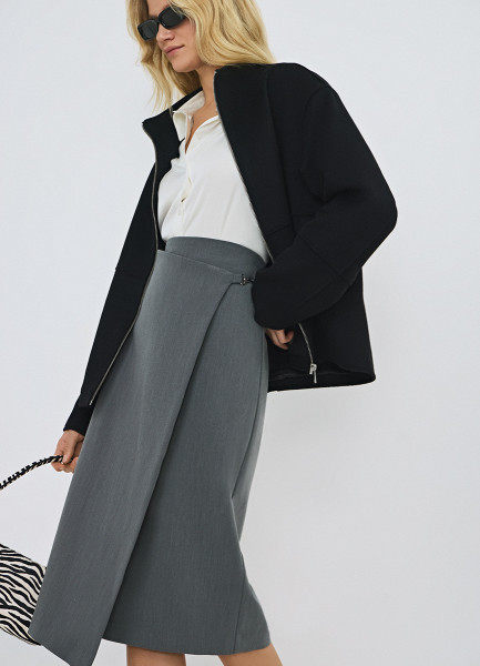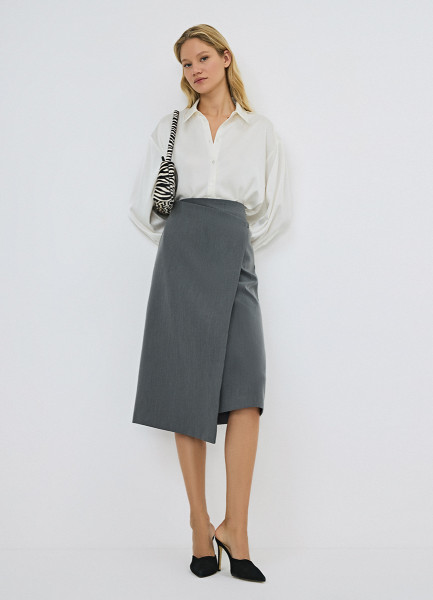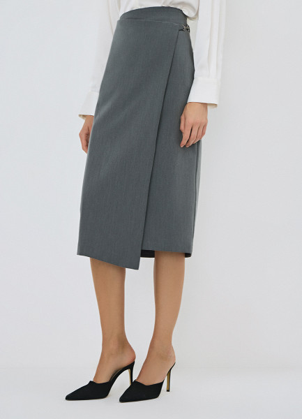 Прямая юбка миди на запах, Серый