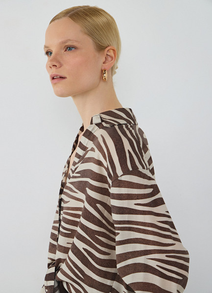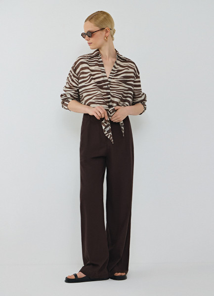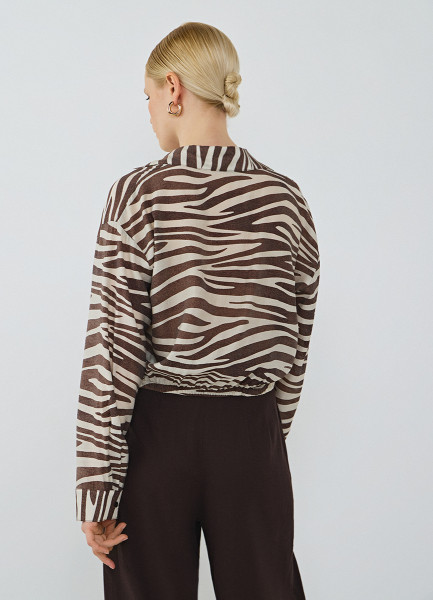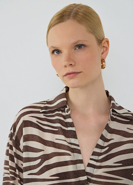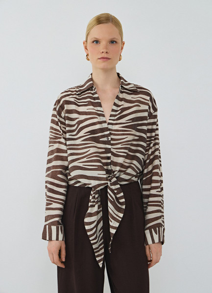 Блузка из вискозы с узлом-завязкой, Бежевый