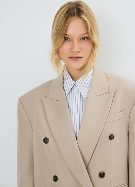 Двубортный жакет O'STIN x Яндекс Книги, Бежевый