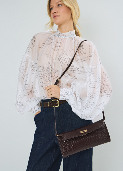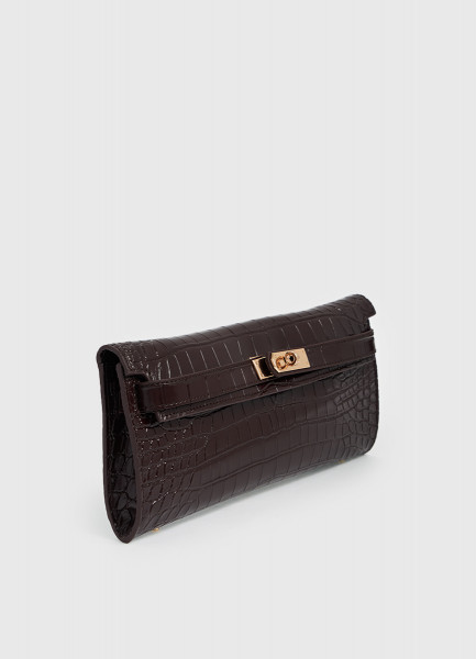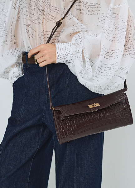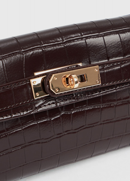 Клатч из натуральной кожи с крокодиловым тиснением O'STIN x Яндекс Книги, Фиолетовый