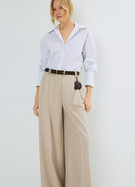 Широкие брюки с шерстью O'STIN x Яндекс Книги, Бежевый