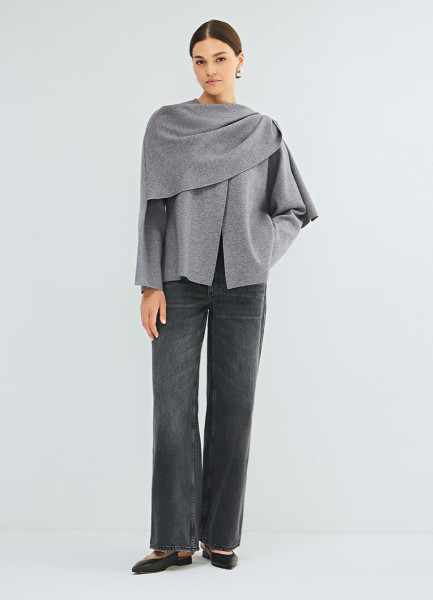 Кардиган с шарфом, Серый