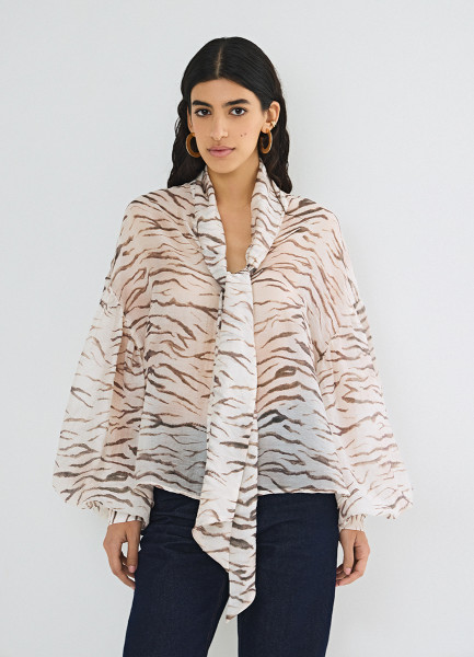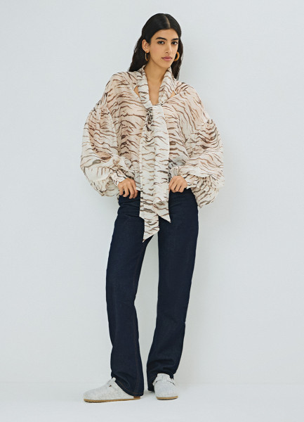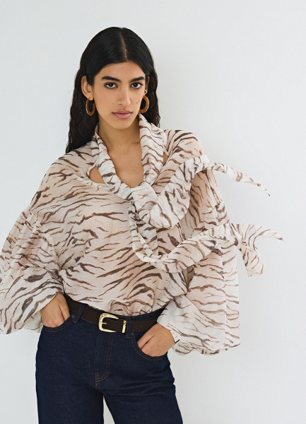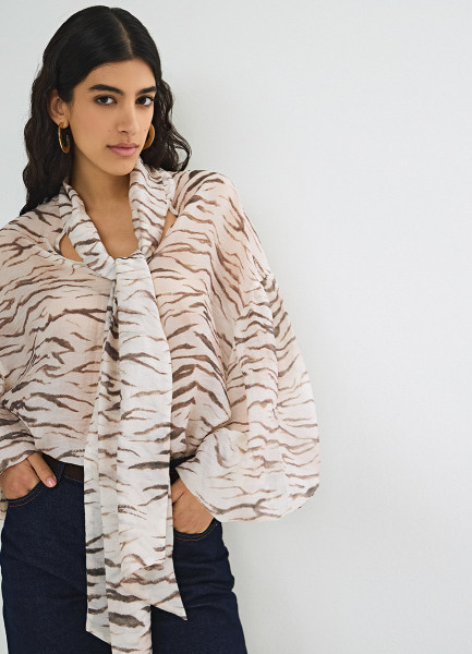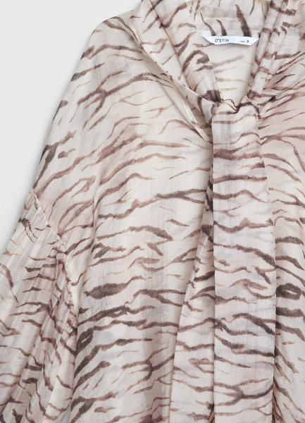Блузка из лиоцелла с бантом-завязкой, Белый