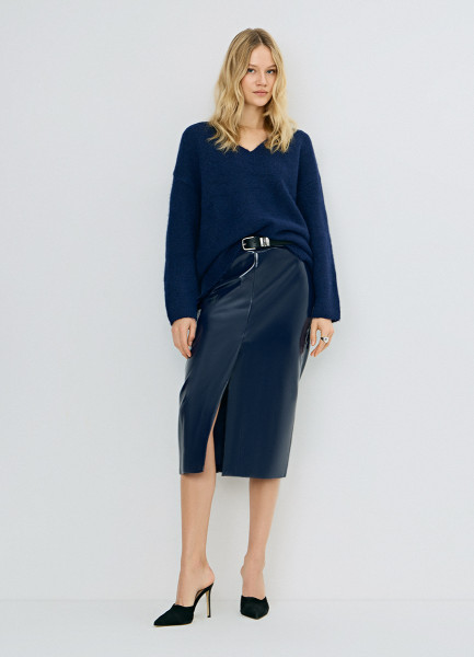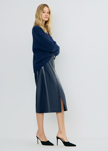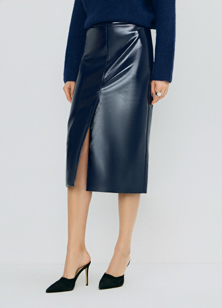 Юбка миди из искусственной кожи, Синий