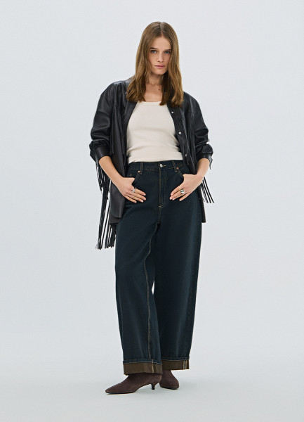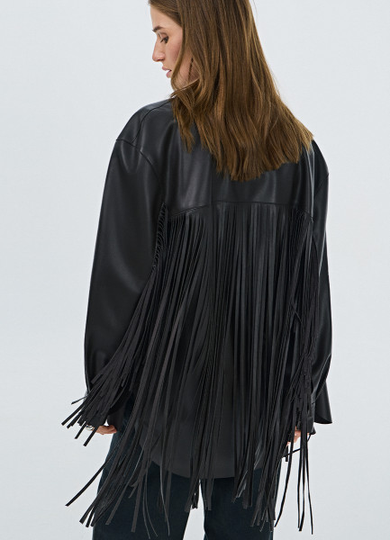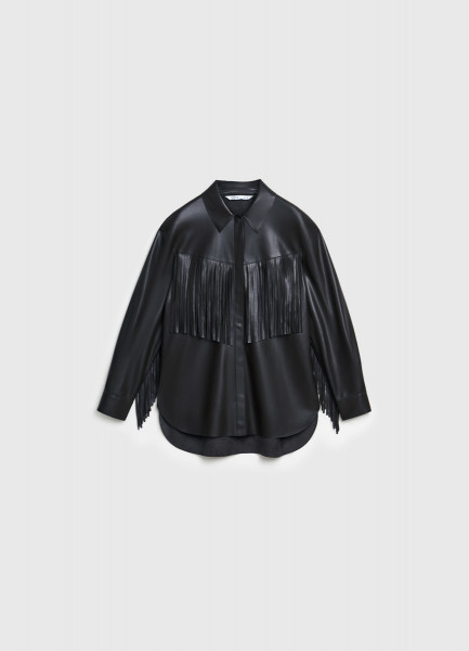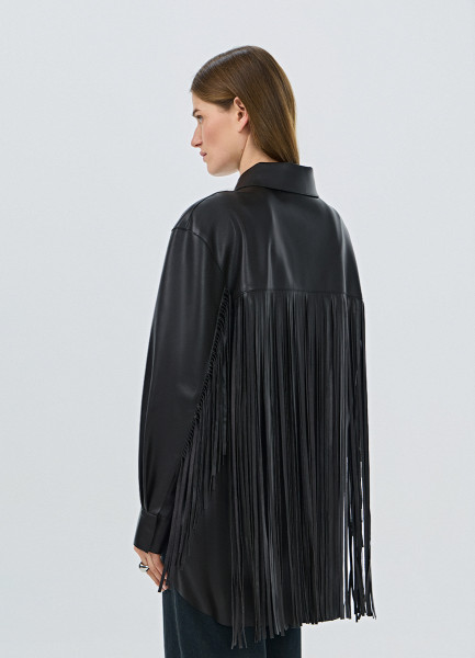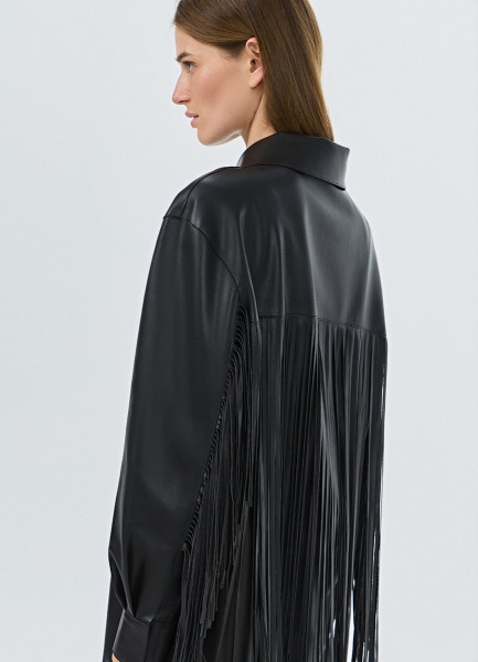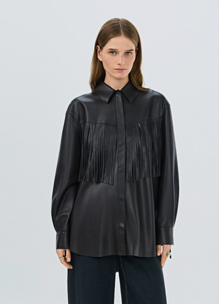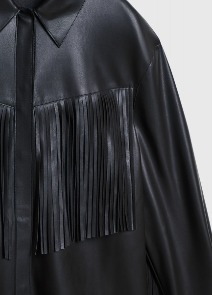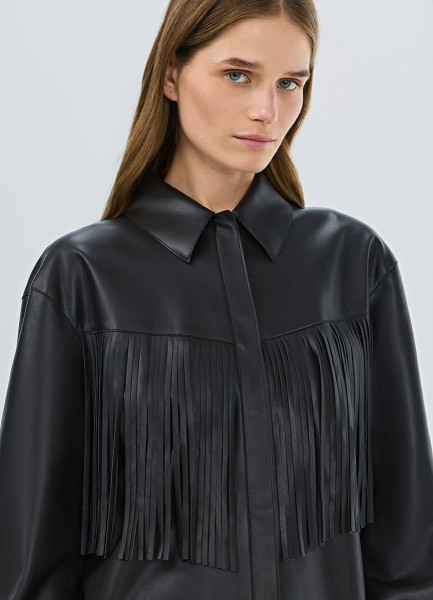 Рубашка из искусственной кожи с бахромой, Коричневый