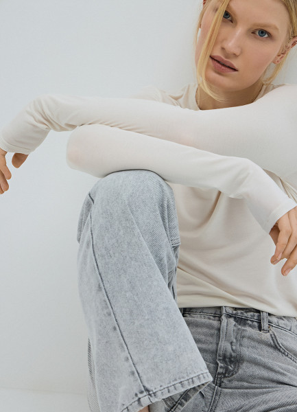 Лонгслив с шёлком, Бежевый
