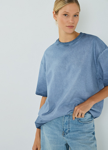 Футболка с градиентом и стразами, Синий