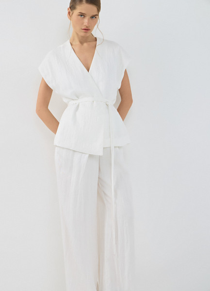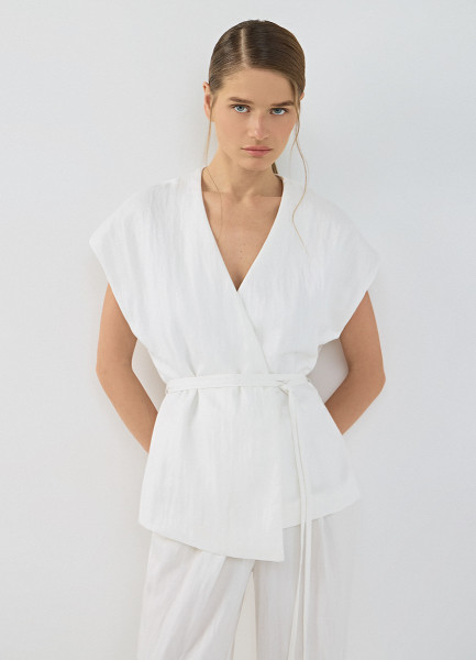 Жилет на запах с поясом, Белый