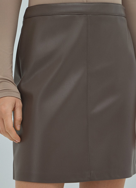 Мини-юбка из искусственной кожи, Коричневый