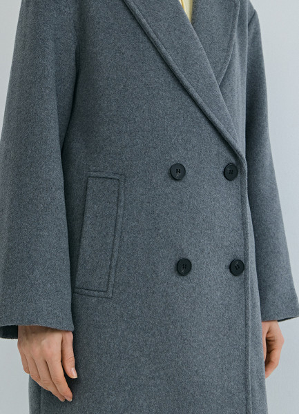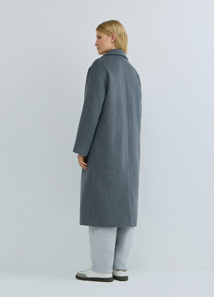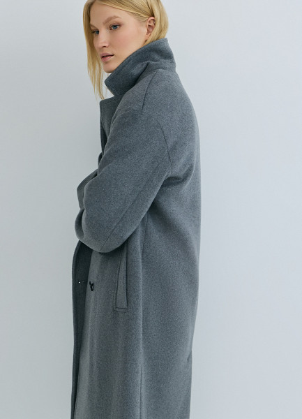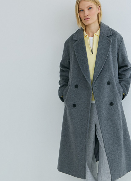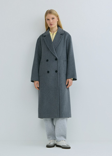 Длинное двубортное пальто из шерсти, Серый