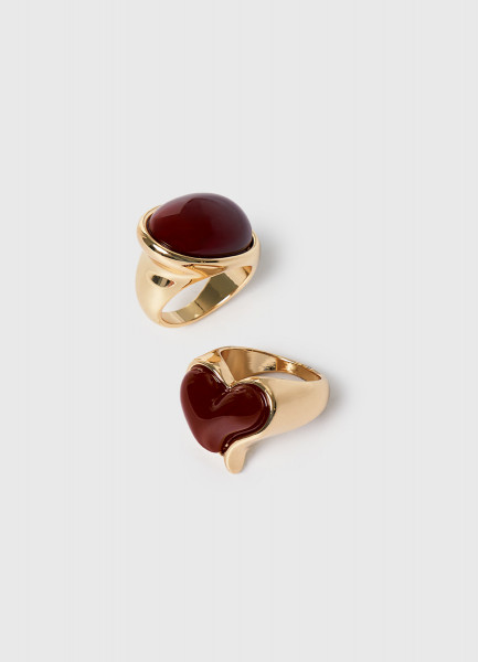 Кольцо с искусственным камнем, 2 шт., Золотой