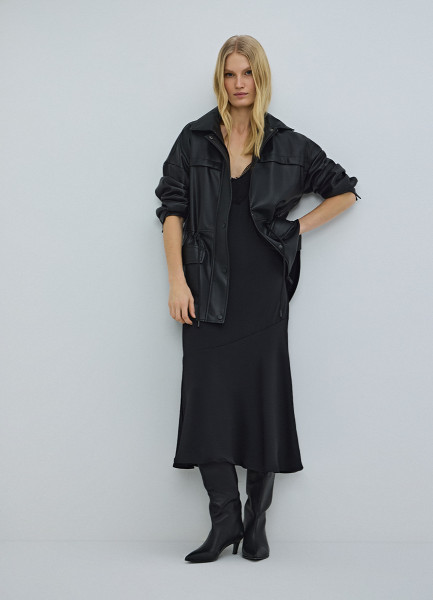 Куртка-рубашка на кулиске из искусственной кожи, Черный