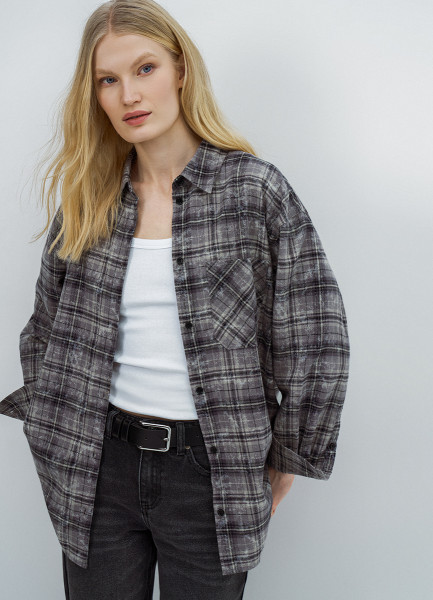 Фланелевая рубашка в клетку, Бежевый