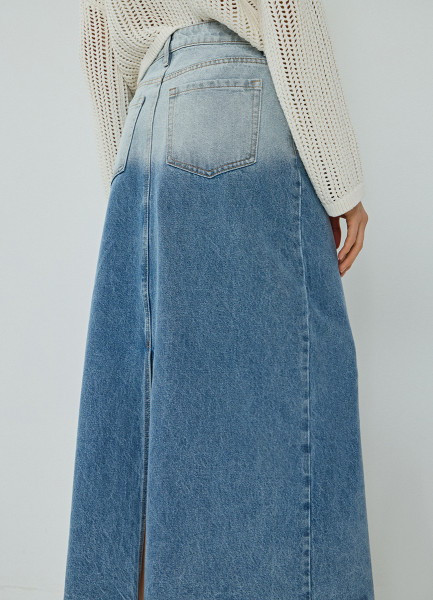 Джинсовая юбка макси с эффектом деграде, Синий