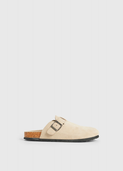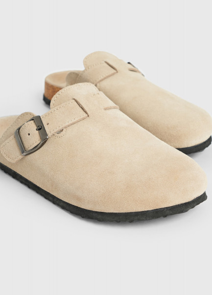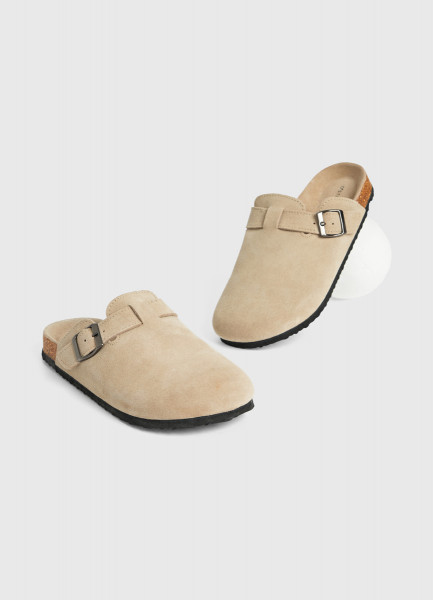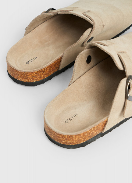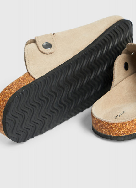 Сабо из натуральной замши, Бежевый