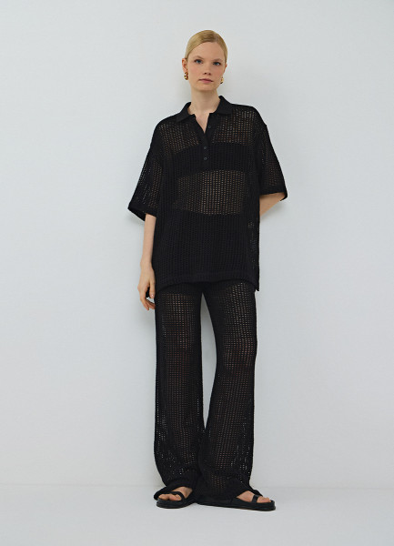 Широкие брюки из структурной ткани, Черный