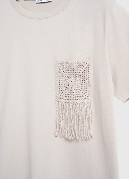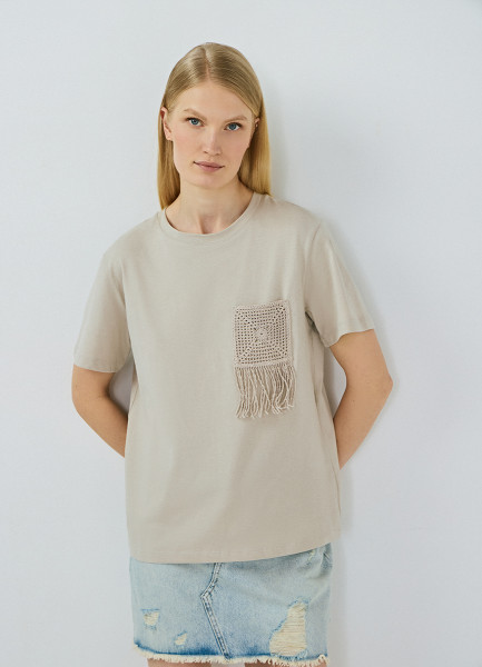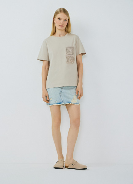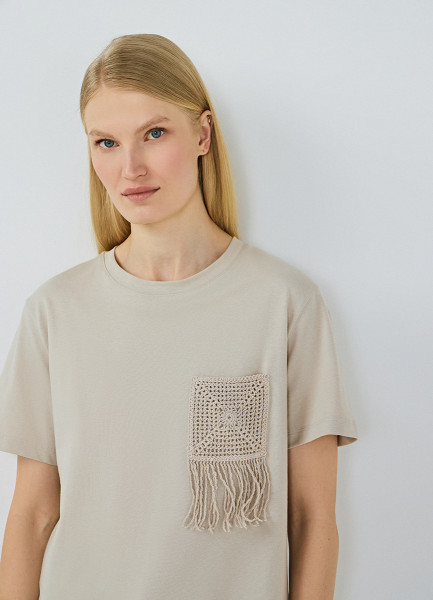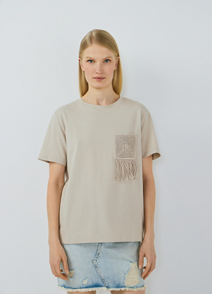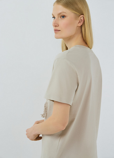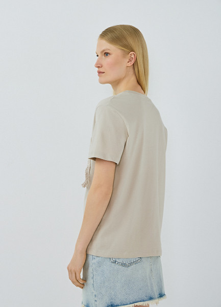 Футболка с вышивкой, Бежевый