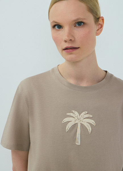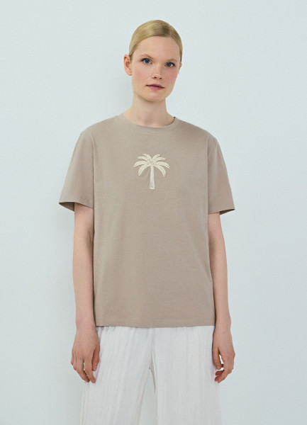 Футболка с вышивкой, Бежевый