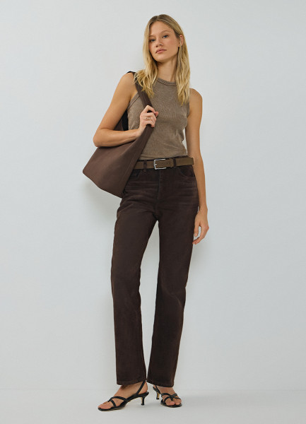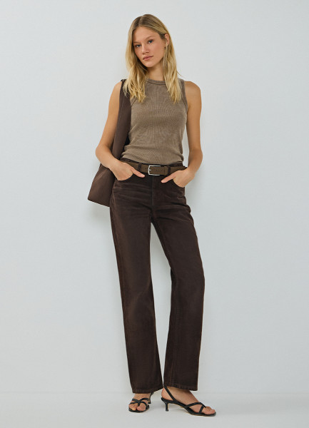 Прямые джинсы с велюровым покрытием, Коричневый