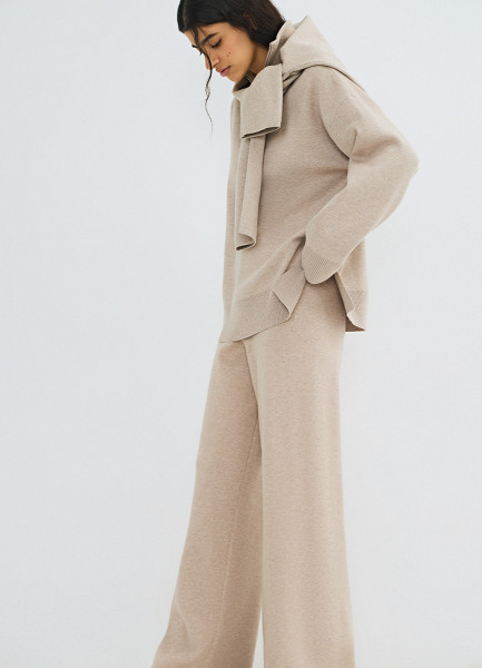 Вязаные широкие брюки, Бежевый
