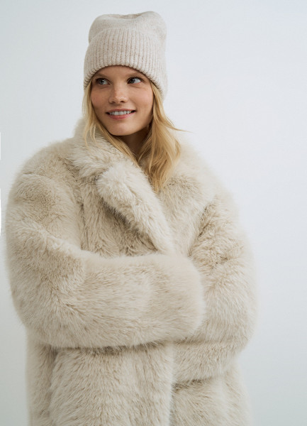Вязаная шапка с отворотом, Бежевый