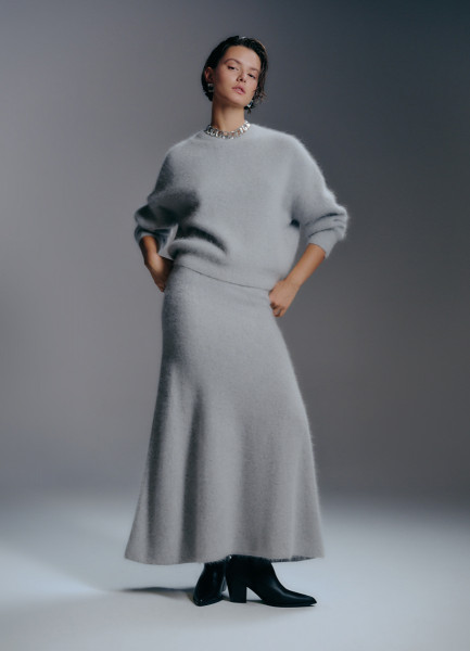 Трикотажная юбка А-силуэта из ангоры, Серый