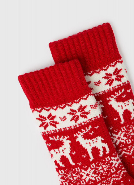Носки с новогодним узором, Красный