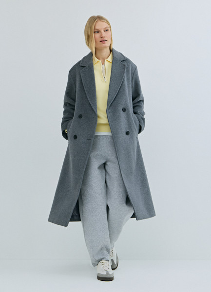 Длинное двубортное пальто из шерсти, Серый