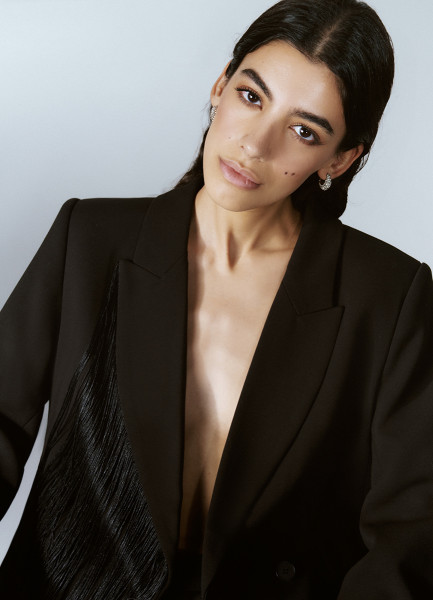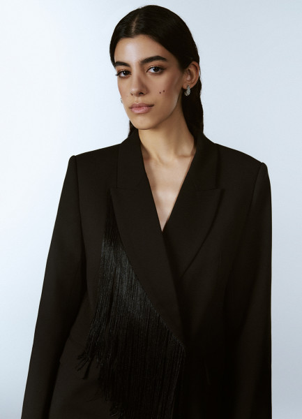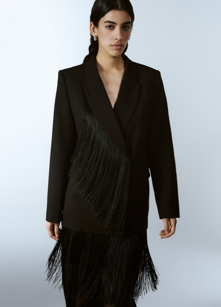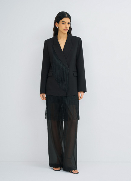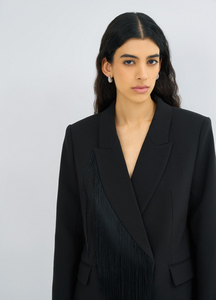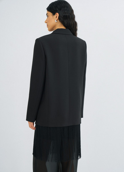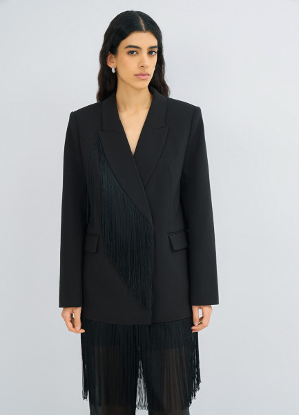 Двубортный жакет с отделкой из бахромы, Черный