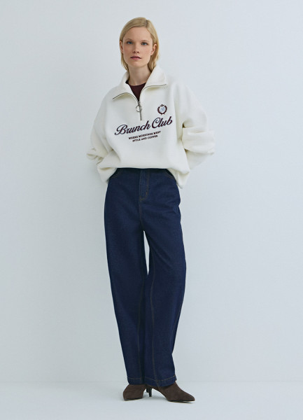 Джемпер с воротником поло на молнии, Бежевый