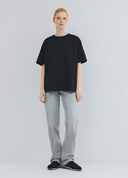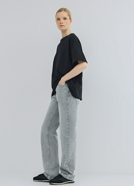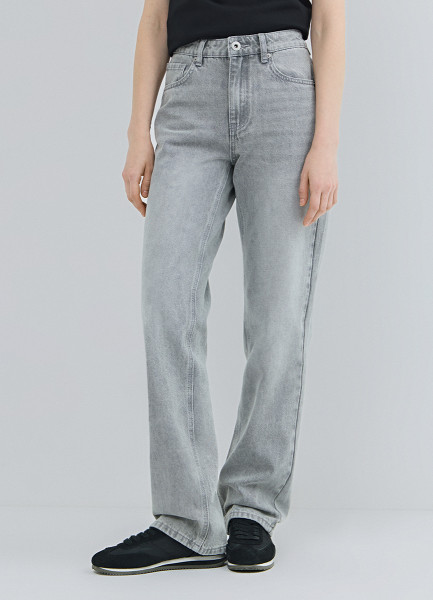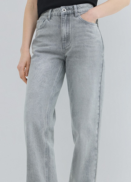 Прямые джинсы с высокой посадкой, Серый