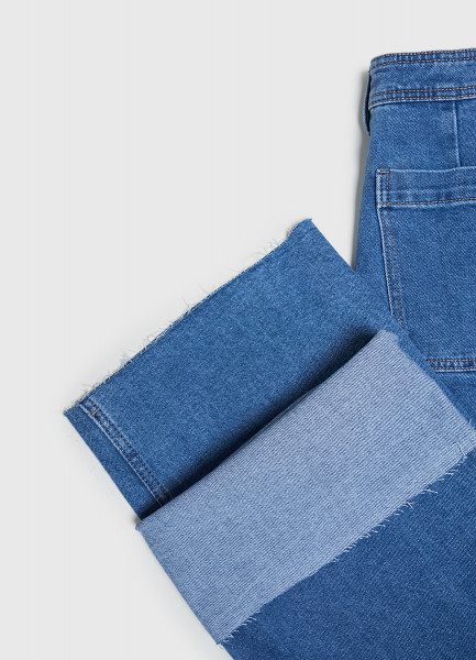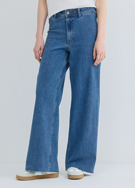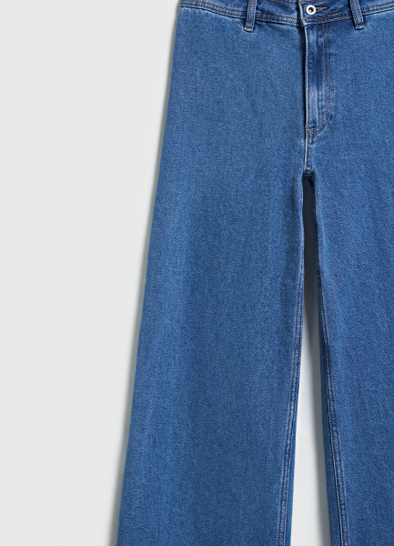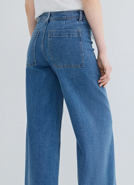 Укороченные широкие джинсы, Синий