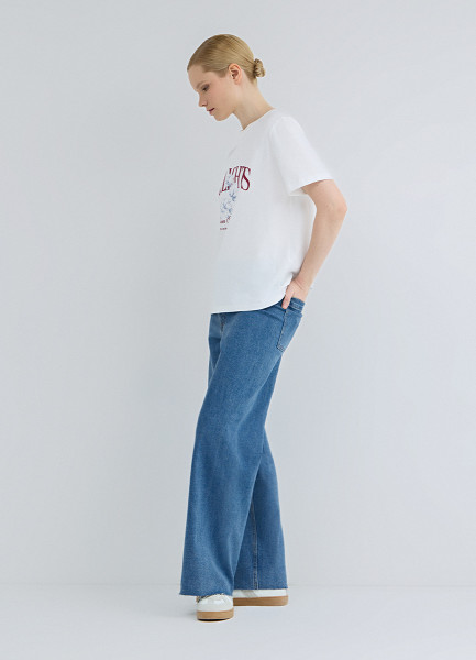 Укороченные широкие джинсы, Голубой