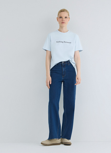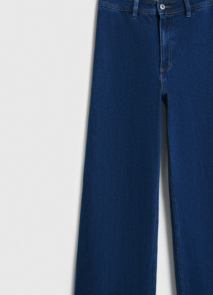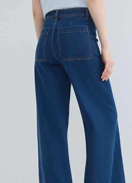 Укороченные широкие джинсы, Синий