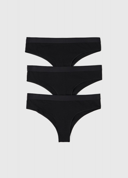 Трусы-бразилиана с мягкой резинкой, 3 шт., Черный