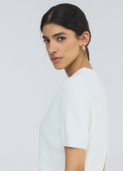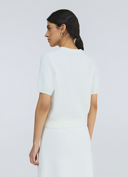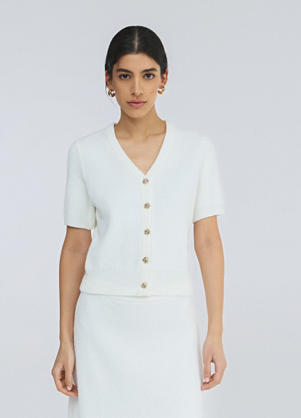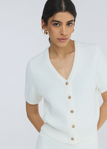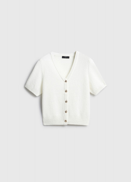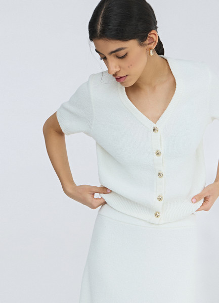 Укороченный кардиган с коротким рукавом, Белый