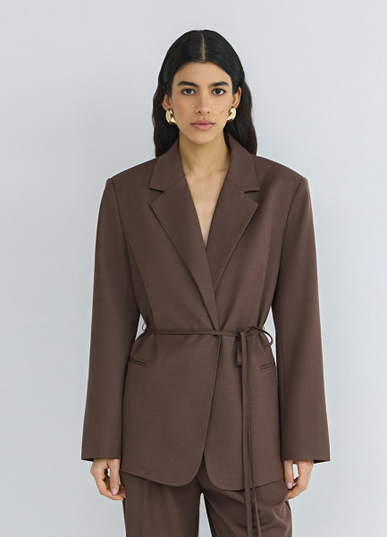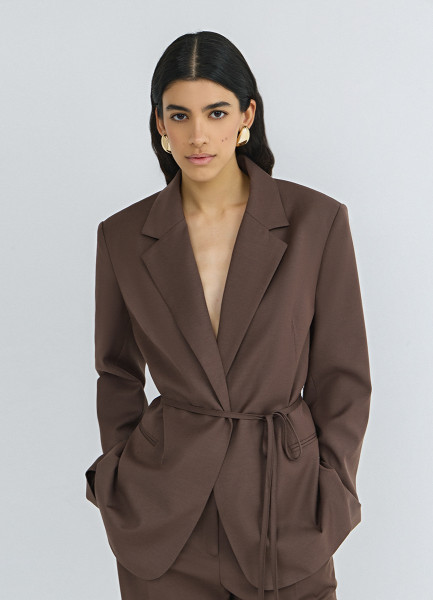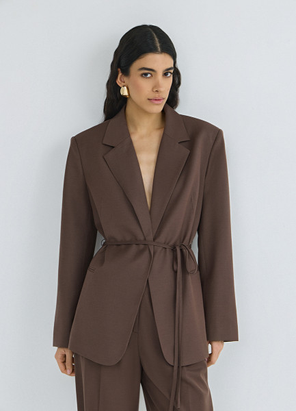 Жакет с поясом, Коричневый