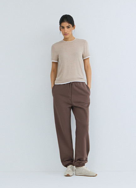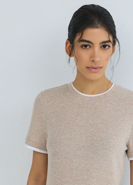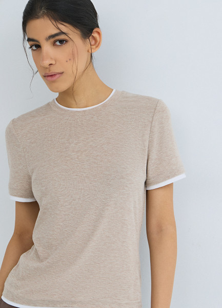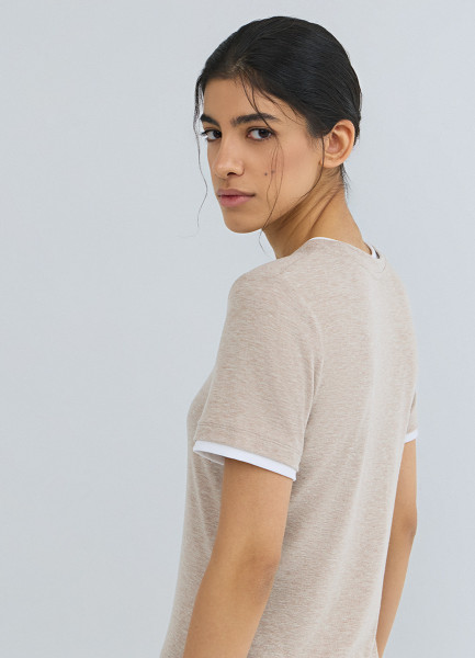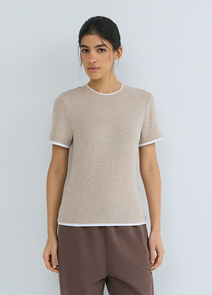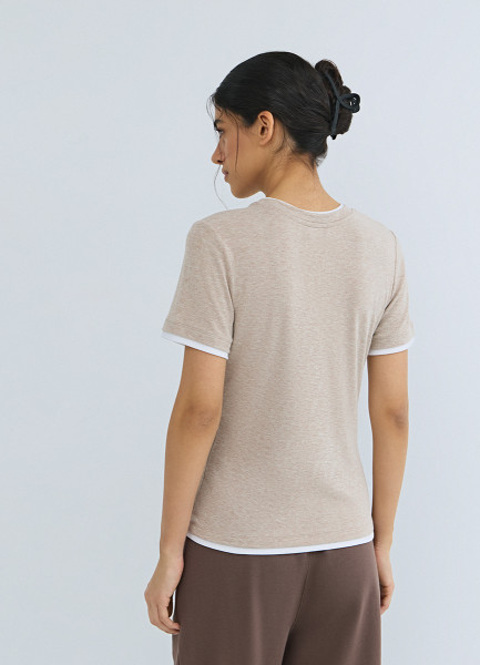 Футболка с контрастной окантовкой, Бежевый