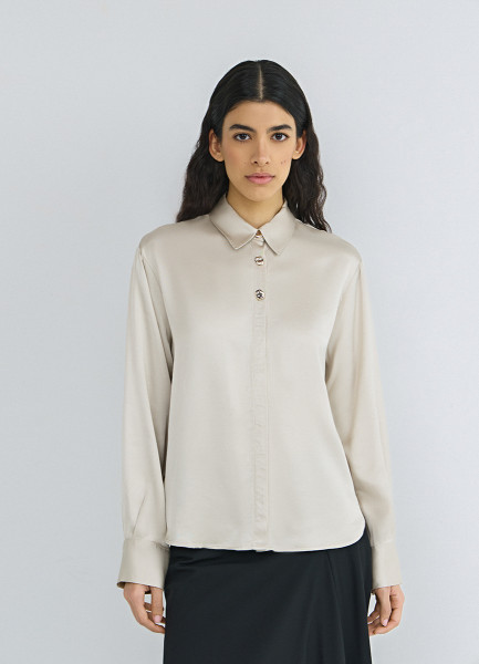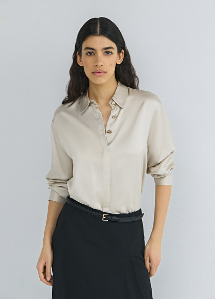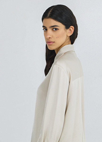 Сатиновая блузка из вискозы, Бежевый