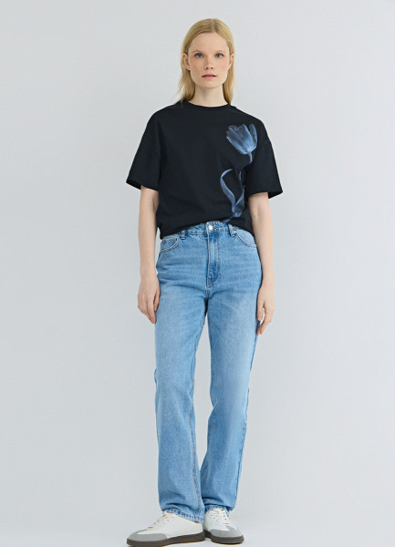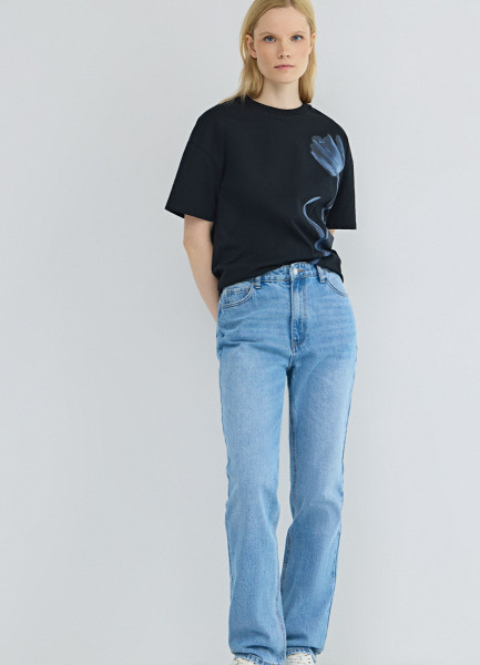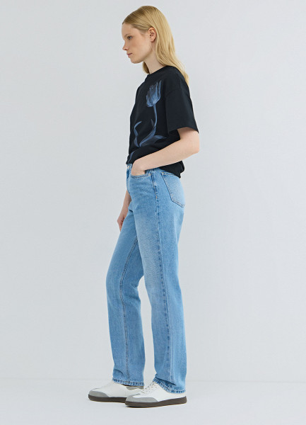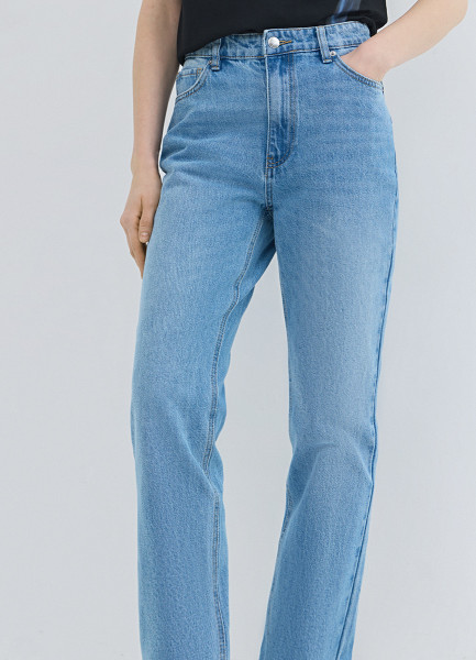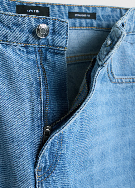 Прямые джинсы со средней посадкой, Голубой