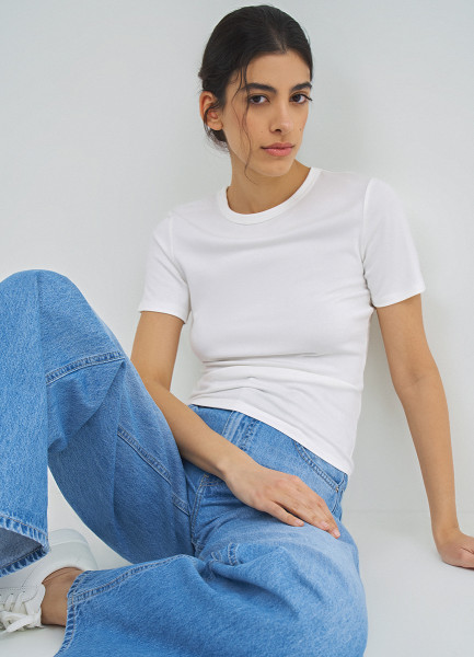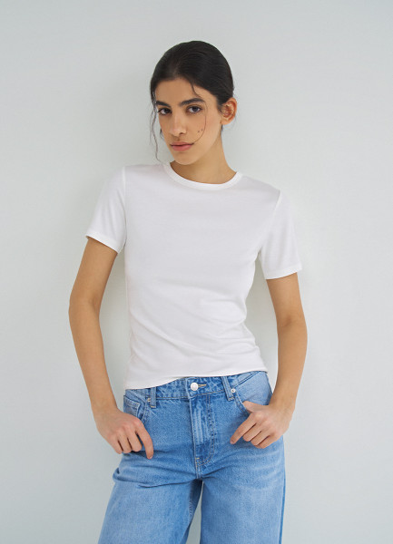 Приталенная футболка в рубчик, Белый