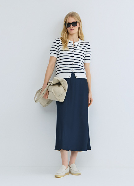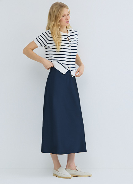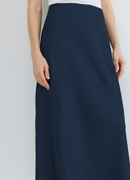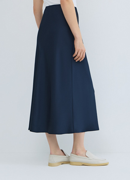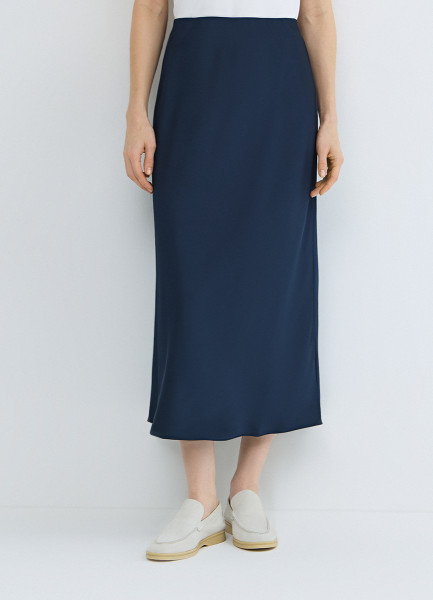 Атласная юбка миди А-силуэта, Синий